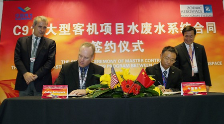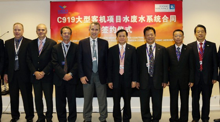 中國經濟網訊 2012年7月9日范堡羅航展開幕當天,中國商飛公司在航展現場就C919大型客機項目與美國蒙諾格公司(Monogram)簽署水/廢水系統采購合同。這表明C919大型客機項目工程發展階段工作正全面展開。
