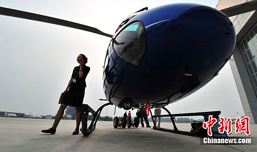 圖為能容六名人員的輕巧小松鼠直升機在展會上成為明星。中新社發 鄒憲 攝