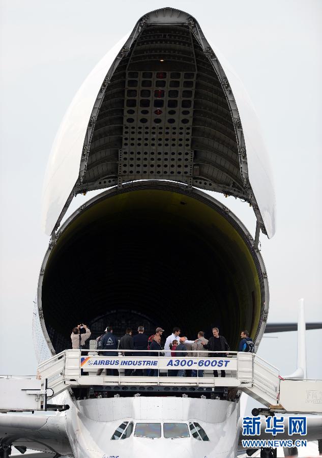 9月14日,觀眾在德國柏林航展上參觀空中客車Airbus Beluga運輸機的運輸艙,該機型的運輸艙容積達1400立方米,可載重47噸,在民用和軍用航空運輸領域都有廣泛應用。正在德國首都柏林舉行的2012年柏林國際航空航天展吸引了來自46個國家和地區的1243家參展商,共有約270架各類飛行器參加靜態和動態展示,這其中以空中客車A380、波音747-8為代表的“空中巨無霸”尤其引人關注。新華社記者 馬寧攝