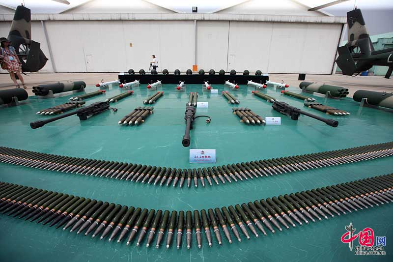 靜態展示區展示直9-WZ武裝直升機的武器裝備和彈藥。 攝影:中國網 楊佳