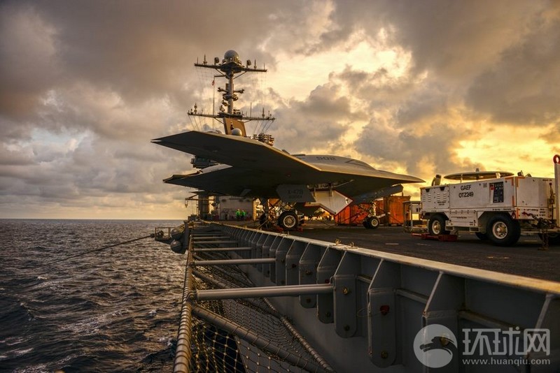 【環(huán)球網(wǎng)綜合報(bào)道】據(jù)美國(guó)海軍網(wǎng)報(bào)道,12月7日,在大西洋上航行的美國(guó)海軍杜魯門號(hào)航母(CVN-75)上,來(lái)自美國(guó)美國(guó)海軍無(wú)人戰(zhàn)斗機(jī)項(xiàng)目的工程師們對(duì)該航母搭載的X-47B無(wú)人艦載戰(zhàn)斗機(jī)進(jìn)行了一系列測(cè)試。測(cè)試的項(xiàng)目包括將X-47B無(wú)人機(jī)從機(jī)庫(kù)轉(zhuǎn)移到甲板、無(wú)人機(jī)在航母甲板上的停放實(shí)驗(yàn)等,整個(gè)測(cè)試過(guò)程從白天持續(xù)到黑夜。