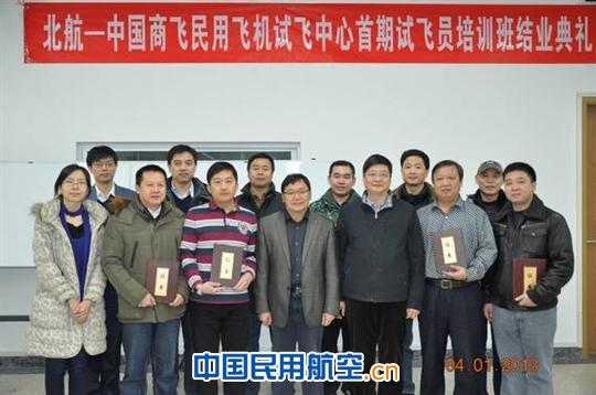 1月4日下午,由北京航空航天大學航空學院承辦的北航—中國商飛民用飛機試飛中心首期試飛員培訓班結業典禮在新主樓D座611教室舉行。