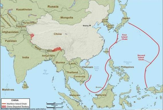 外媒制作的第一島鏈與第二島鏈示意圖,不代表本網觀點。