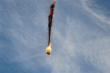 資料圖:2007年加拿大一個熱氣球起火爆炸。熊熊燃燒的熱氣球。