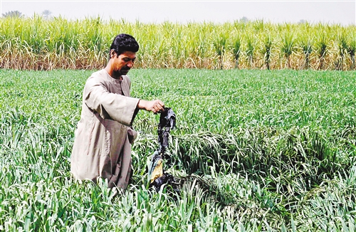 2月26日,在盧克索附近,救援人員在發生熱氣球爆炸的事故現場查看熱氣球殘骸。