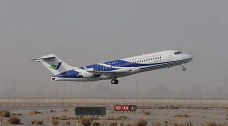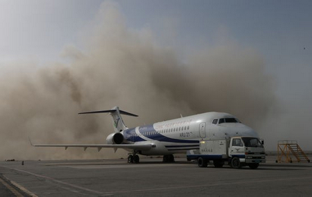 中國經濟網訊 2013年3月31日,ARJ21-700飛機102架機進行了轉場后的首次檢飛。102架機于上午9時21分在嘉峪關機場起飛,經過1小時46分鐘的飛行,于11時07分降落,順利完成了檢飛任務。局方試飛員對飛機性能和狀態給予了肯定。