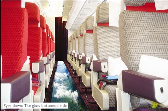 據(jù)英國《每日鏡報》4月1日報道,為了讓乘客真正體會在空中旅行的感覺,英國維珍航空公司推出的新式噴氣機安裝有玻璃地板,讓飛行途中的乘客低頭便可將天空一覽無遺,真正體會“在空中行走”的感受。