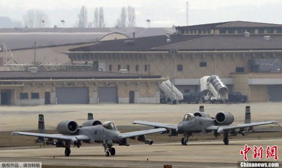 當地時間4月2日,位于韓國首爾以南的烏山空軍基地內,駐韓美軍戰機頻繁進行起降訓練。圖為停放在機場上的美軍A-10攻擊機。