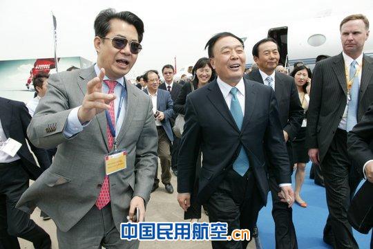 民航局局長李家祥、副局長夏興華等一行在巴西航空工業(yè)公司大中華區(qū)總裁關(guān)東元的陪同下參觀巴航工業(yè)公務(wù)機(jī) 攝影:安利國