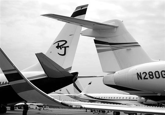 分享公務機產權的企業和個人,需要將飛機交予金鹿航空托管,而且在使用時,另行收取油費、機組薪酬、 機場起降費等。張衡年/攝影
