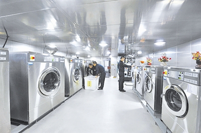 負(fù)責(zé)全體艦員衣物的洗滌、烘干、熨燙,所有送洗衣物上都統(tǒng)一掛上姓名標(biāo)簽,艦員只需將待洗衣物裝進(jìn)洗衣袋內(nèi),送至洗衣房,過(guò)半天時(shí)間自取即可。