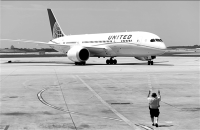當地時間5月20日,美國芝加哥,美國聯合航空公司旗下一架波音787夢想客機準備從休斯敦飛抵芝加哥。圖/CFP