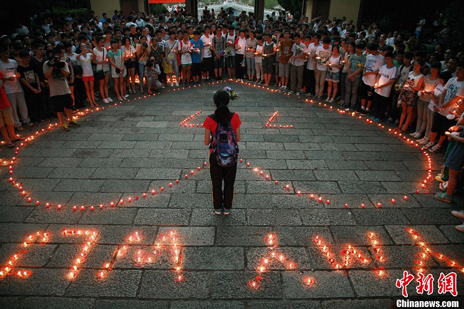 7月8日,市民在江山市須江公園內(nèi)為韓亞空難遇難中國女生默哀祈福。7日凌晨,在美國舊金山國際機(jī)場著陸時失事的韓亞航空公司波音777型客機(jī)已經(jīng)造成至少2人死亡,韓亞航空向浙江江山市政府發(fā)去傳真,稱根據(jù)登機(jī)牌,參加江山中學(xué)赴美夏令營的兩名女生王琳佳和葉夢圓在此次空難中不幸罹難。中新社發(fā) 李晨韻 攝