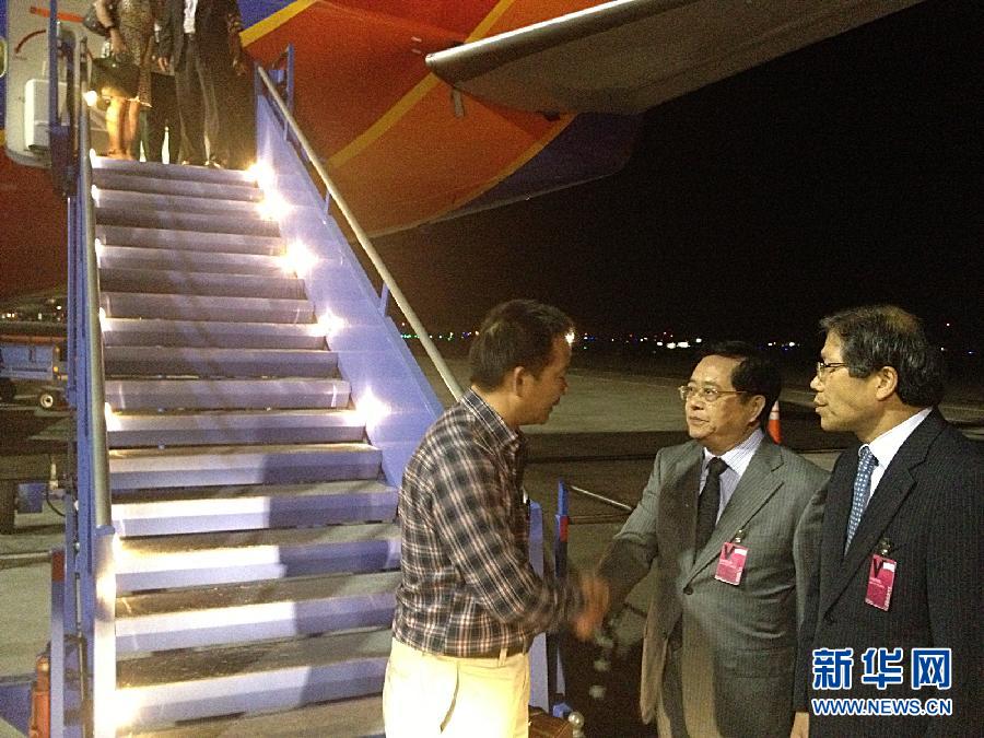 7月8日,在美國舊金山國際機場,中國駐舊金山總領事袁南生(中)與一名韓國亞洲航空公司客機空難傷亡人員家屬握手。韓亞航空公司214航班6日中午降落美國舊金山國際機場過程中失事,兩名中國公民遇難,180多人入院接受治療。這架波音777-200型客機當時搭載141名中國公民,其中117人截至8日已經確認平安。新華社發(中國駐舊金山總領館提供)