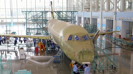 中國經濟網航空訊 據中國商飛有限公司報道,ARJ21-700飛機106架機于6月28日移入飛機總裝車間后,飛機總裝車間緊鑼密鼓地進行前貨艙隔音棉的敷設、電纜導線的地面返修、后附件艙液壓系統相關附件的安裝等裝配任務,以及通壓和導通前的準備工作。