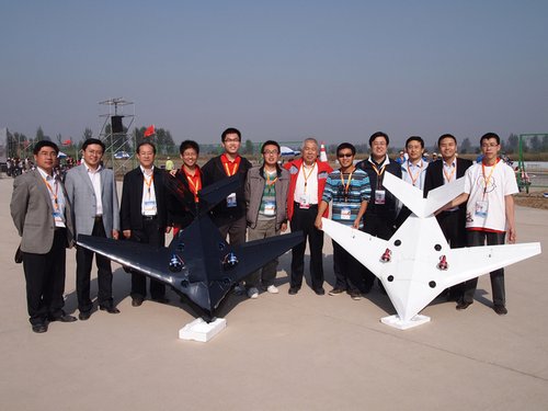 資料圖:往屆中航工業杯參賽選手與無人機合影