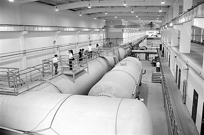 在北京市郊的雁棲湖畔,有一棟長(zhǎng)條形的灰色建筑,這是錢(qián)學(xué)森工程科學(xué)實(shí)驗(yàn)基地的空天飛行器實(shí)驗(yàn)室。建筑中有一條265米長(zhǎng)的巨大管道,這是“JF12復(fù)現(xiàn)高超聲速飛行條件激波風(fēng)洞”。