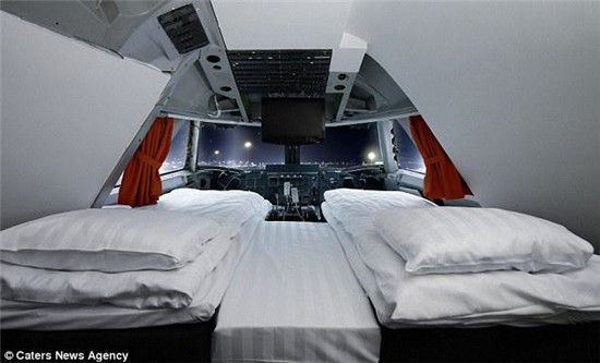 客人還可以在豪華的座艙套房中欣賞瑞典斯德哥爾摩附近Arlanda機場的全景。這架目前已經停用的飛機每天24小時向參觀者開放,還可以用于舉辦會議。