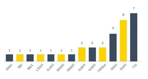 2013年上半年大中華區(qū)新增的30架公務(wù)機機型。