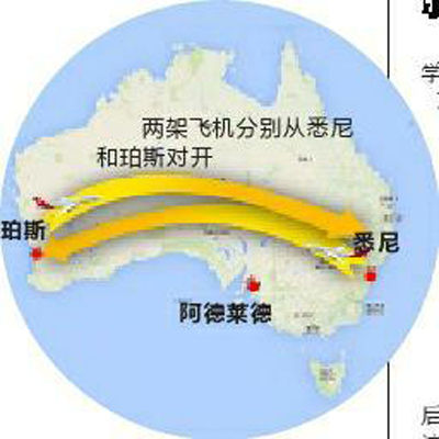 20日12時(shí),兩架分別從澳大利亞悉尼和珀斯市對(duì)開(kāi)的A330空客正好經(jīng)過(guò)阿德萊德以西19公里的上空。