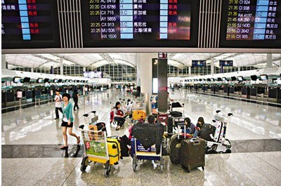 香港機場更陷入癱瘓狀態,截至22日晚9時,共有370班客機取消,76班客機延誤。雖然國泰及港龍航空早在30小時前,于臺風到達香港范圍前一日,已宣布取消22日下午6時后所有航班,但在機場離境大堂內仍有大量旅客等候辦理候補機位,希望盡快離港。