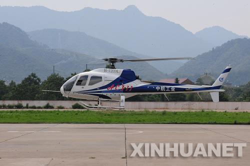 資料圖片: 2011年9月1日,國產2噸級輕型民用直升機AC311正在執行“自轉著陸”科目試飛。