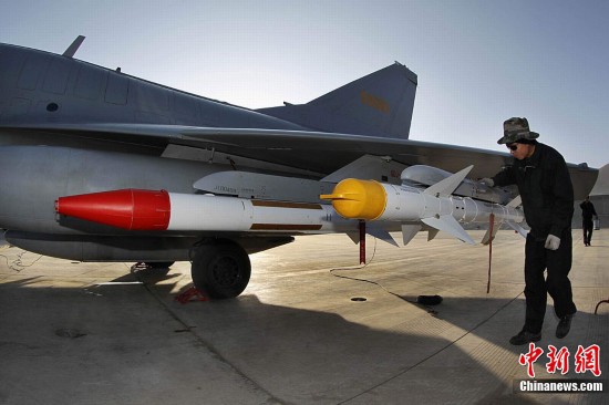 1月31日,雪域高原陽光明媚,萬里無云。駐藏空軍某軍用機場戰鷹列陣,車輛奔流,戰士們在緊張有序中拉開龍年新春首飛的序幕。圖為機務人員正在精心檢查全副武裝的戰鷹。中新社發 劉應華 攝 圖片來源:CNSPHOTO