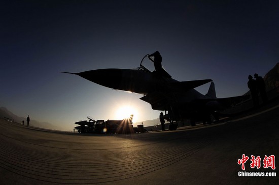 1月31日,雪域高原陽光明媚,萬里無云。駐藏空軍某軍用機場戰鷹列陣,車輛奔流,戰士們在緊張有序中拉開龍年新春首飛的序幕。圖為晨曦初露,機務人員正在緊張準備戰鷹。中新社發 劉應華 攝 圖片來源:CNSPHOTO