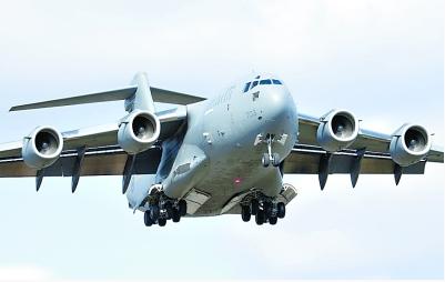 運(yùn)-20采用常規(guī)布局,機(jī)翼為懸臂式上單翼,前緣后掠角24°,無(wú)翼梢小翼。懸臂式T形尾翼。垂直安定面與機(jī)身連接處向前伸有小背鰭,嵌入式方向舵分為上、下兩段,升降舵分為兩段。液壓可收放前三點(diǎn)式起落架,可靠重力應(yīng)急自由放下。前起落架為雙輪,主起落架為6輪。前起落架向前收入機(jī)身,主起落架旋轉(zhuǎn)90°向里收入機(jī)身兩側(cè)整流罩內(nèi)。該機(jī)為大展弦比超臨界翼型,采用包括前緣縫翼及外吹式襟翼系統(tǒng)等增升裝置。