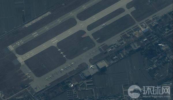 資料圖:美國衛星拍攝到的中國中部閻良某機場的照片,圖中間靠下位置的即為運-20運輸機。