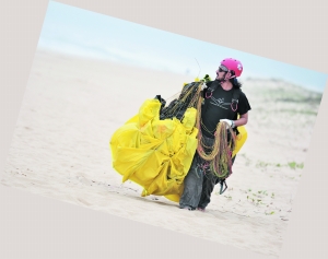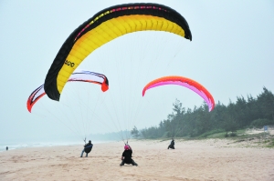 這是一群“斗傘”的人,從他們的如小麥般的膚色不難看出他們對于陽光和沙灘的熱愛,他們手中的滑翔傘在海風中像撐滿了的帆,似乎稍一放松,它就會帶著操縱者乘著風向天邊飛去,地上的操縱者則像在與大自然較量,他們把身體重心放到最低,幾乎都要坐在甚至躺在沙灘上。