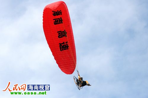 21日上午8點左右,經過一天的休整,2011環海南島飛行拉力賽東方段在東方市邊貿城正式開幕。比起前幾日的大風天氣,今天的風速明顯減弱,在海口未能與廣大市民和游客見面的熱氣球、動力傘、動力三角翼今天也終于如愿升空,在東方的碧海藍天間盡情的翱翔。大批東方市民趕到現場,一幕幕精彩的飛行表演引得現場尖叫連連、掌聲不斷。