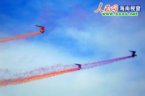 21日上午8點左右,經過一天的休整,2011環海南島飛行拉力賽東方段在東方市邊貿城正式開幕。比起前幾日的大風天氣,今天的風速明顯減弱,在海口未能與廣大市民和游客見面的熱氣球、動力傘、動力三角翼今天也終于如愿升空,在東方的碧海藍天間盡情的翱翔。大批東方市民趕到現場,一幕幕精彩的飛行表演引得現場尖叫連連、掌聲不斷。