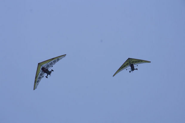 海口試飛現場,動力懸掛滑翔機比賽項目組楊組長介紹,他們今天下午試飛,主是為17日的開幕式進行排兵布陣,精心編排飛行隊形,力求達到最佳飛行效果,讓海南觀眾一飽眼福。至于他們在排什么陣形,楊組長表示暫時保密,并請本網告訴熱心關注祖國航空科技體育的海南觀眾,此次開幕式表演和飛行比賽將精彩無限,十分值得期待。
