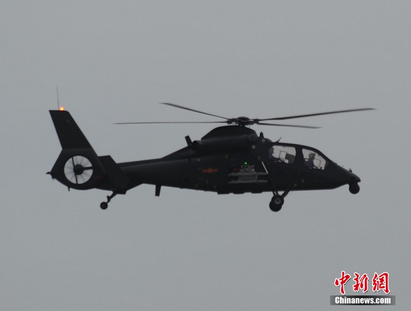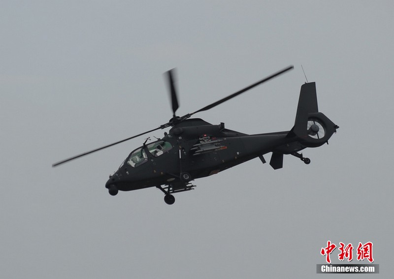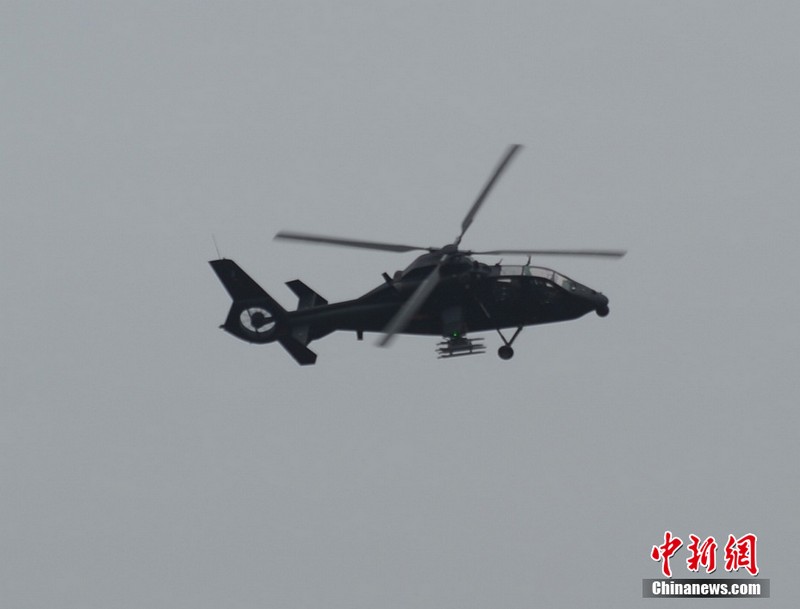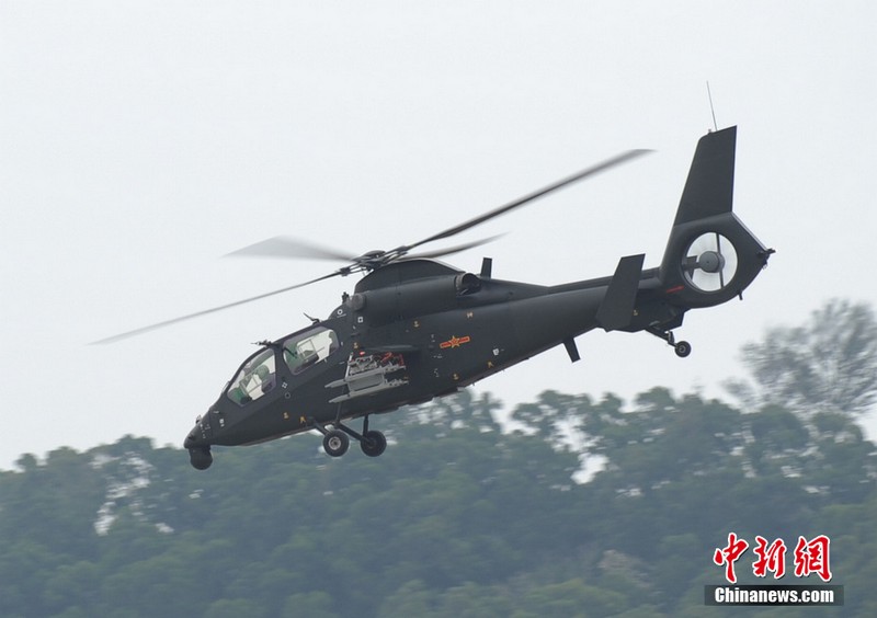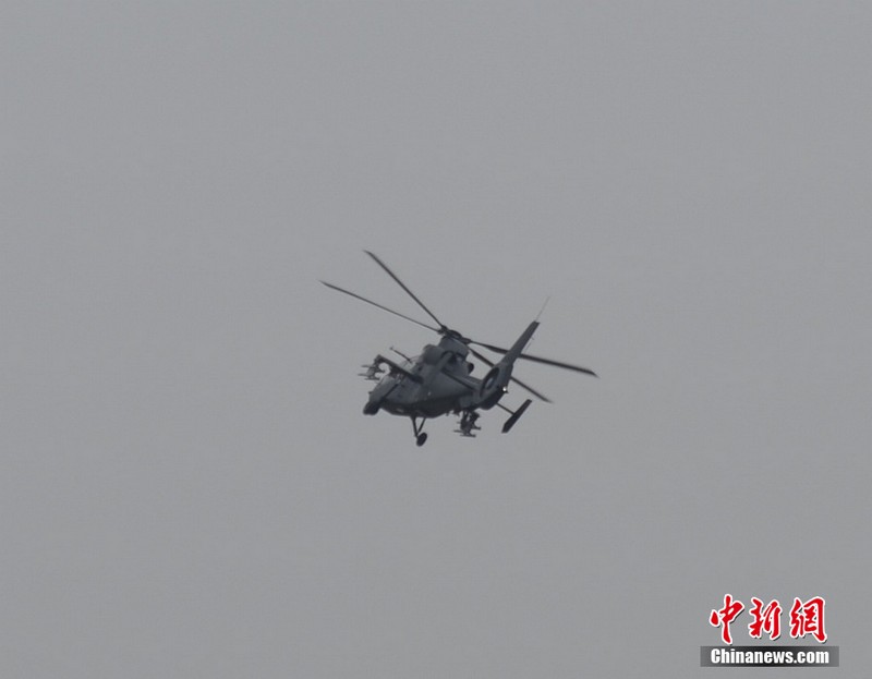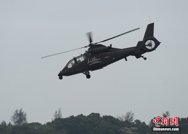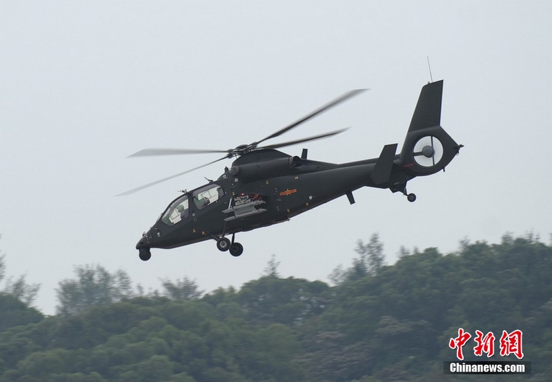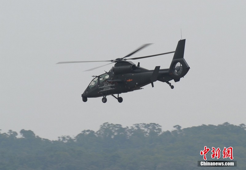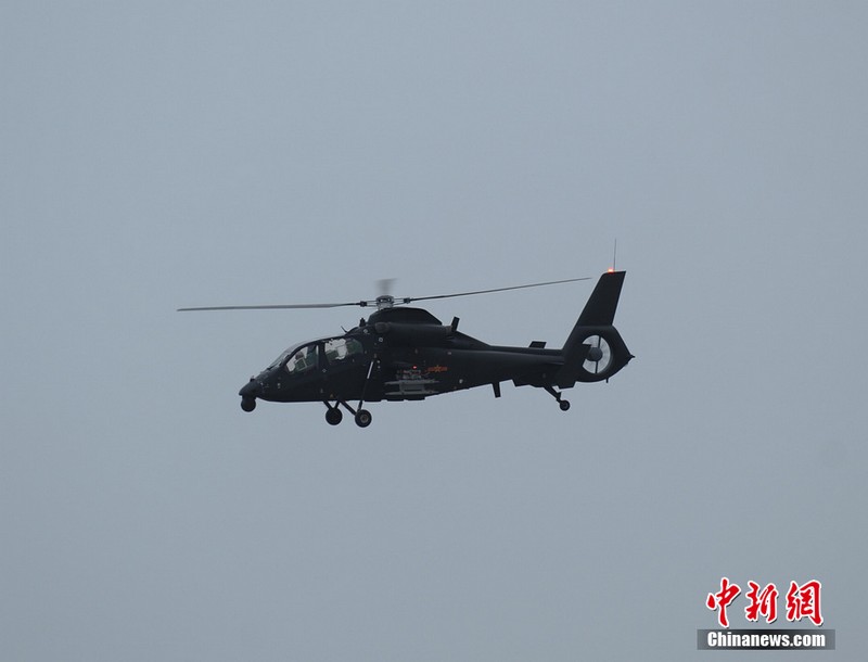 中新網珠海11月11日電(陳海峰) 中國陸航直19武裝直升機11日在珠海航展上空進行了精彩的飛行表演。