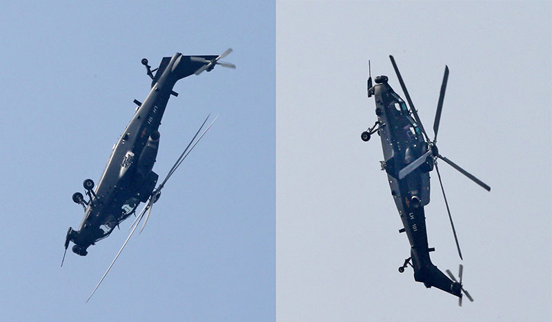 我國自主研制生產的武直-10武裝直升機亮相在珠海舉行的第九屆中國國際航空航天博覽會,在飛行表演中展示了這款直升機的優良性能。