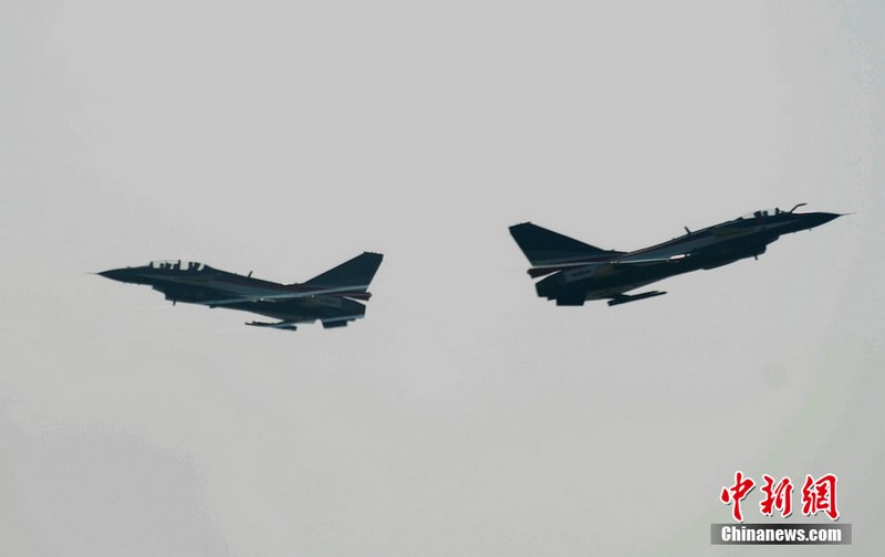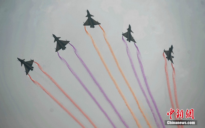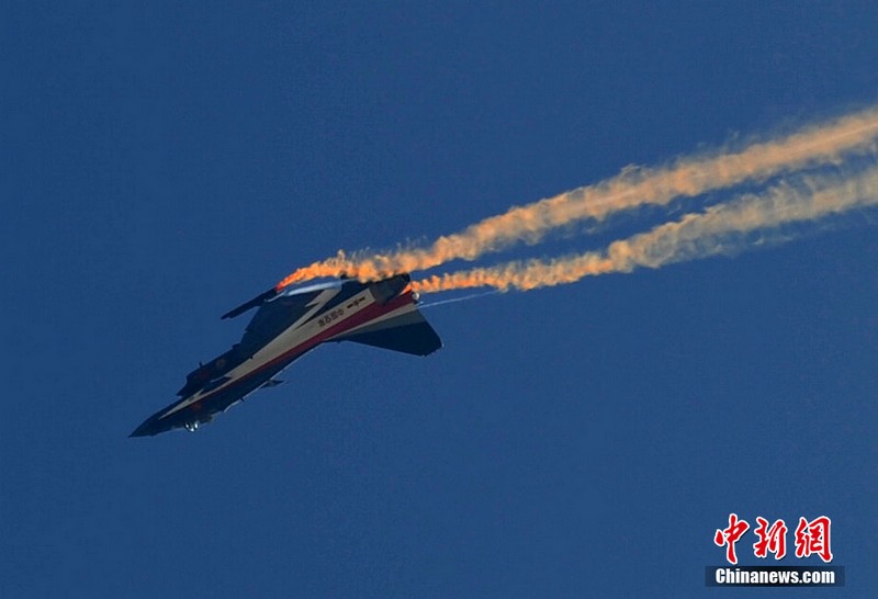 中國空軍八一飛行表演隊上演了“向上開花”、“雙機對沖”、“小半徑轉圈”等精彩動作。記者曾多次觀看過八一飛行表演隊的表演,而這次是最精彩的一次!