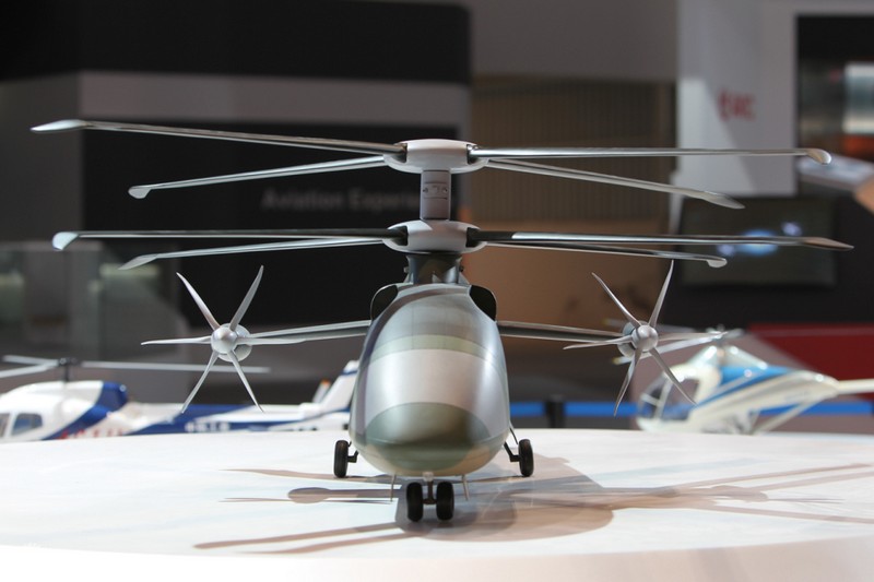 “先驅01”新概念高速直升機的兩副旋翼共軸反轉相互平衡反扭矩,同時提供飛行器垂直起降,懸停時所需的升力。大速度前飛時,尾推力槳工作。經過特殊設計的槳葉能夠很好的解決后行槳葉失速問題,從而實現直升機的高速飛行。