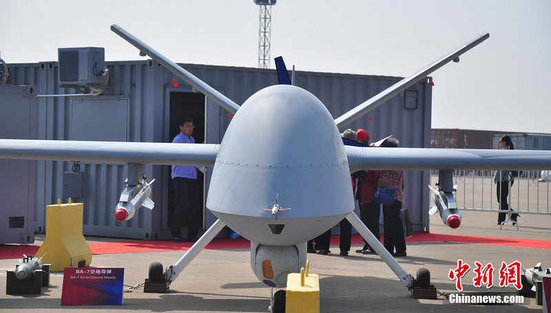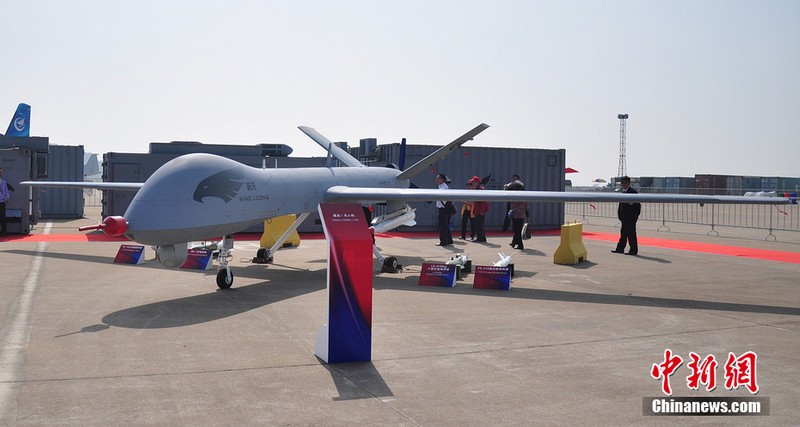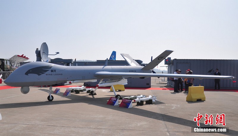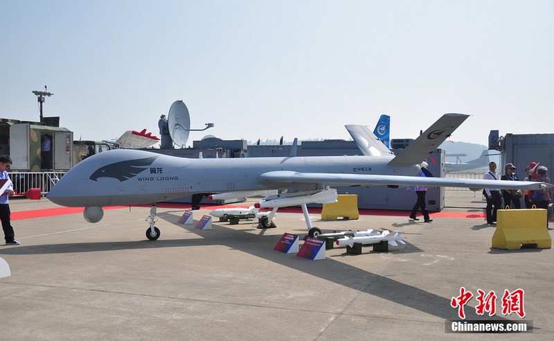 中新網珠海11月14日電(陳海峰) 翼龍無人機真身首次在珠海航展上亮相。在各種展會上見慣了其模型狀態的記者,初次見到真機對它的尺寸之大也著實驚訝了一番。