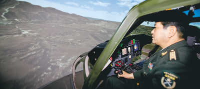 開直升機不是每個人都有的體驗,也未必每人都敢開,模擬飛行則解決了這些問題。在模擬訓練室里,模擬飛行教研室主任、特級飛行員黃殿義,帶著本報記者在Z9WA/Z型模擬直升機里,體驗了一把虛擬飛行。球形3D屏幕讓人有身臨其境之感,一會掠過高山,一會飛過大海。“模擬機沒有危險,能消除恐懼心理,多開模擬機,便于以后開實裝機。”黃殿義說。