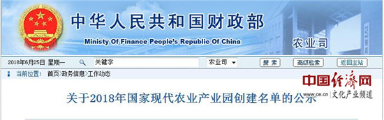 經濟日報-中國經濟網北京6月25日訊 日前,財政部公示了2018年國家現代農業產業園創建名單。公示的名單包括21個國家現代農業產業園,公示期為6月22日至6月26日。