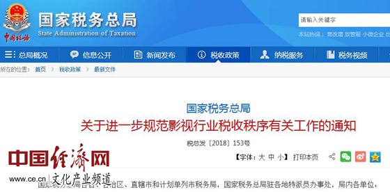 國家稅務(wù)總局關(guān)于進(jìn)一步規(guī)范影視行業(yè)稅收秩序有關(guān)工作的通知