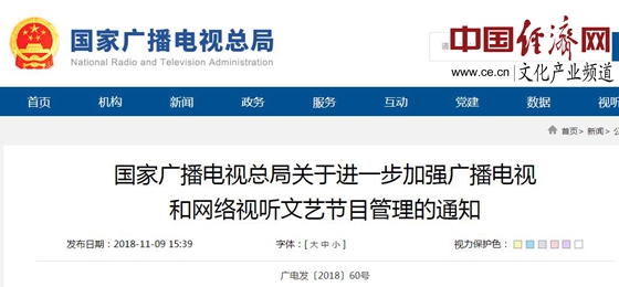 經(jīng)濟(jì)日報(bào)-中國經(jīng)濟(jì)網(wǎng)北京11月20日訊 日前,國家廣播電視總局發(fā)布了《關(guān)于進(jìn)一步加強(qiáng)廣播電視和網(wǎng)絡(luò)視聽文藝節(jié)目管理的通知》(以下簡稱“通知”)?!锻ㄖ分赋?,一些文藝節(jié)目出現(xiàn)了影視明星過多、追星炒星、泛娛樂化、高價(jià)片酬、收視率(點(diǎn)擊率)造假等問題,不僅推高制作成本、破壞行業(yè)秩序生態(tài),而且誤導(dǎo)青少年盲目追星,滋長拜金主義、一夜成名等錯(cuò)誤價(jià)值觀念,必須采取有效措施切實(shí)加以糾正。