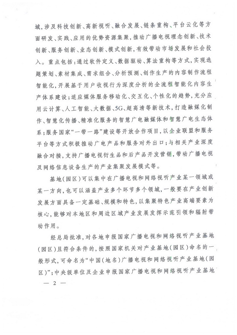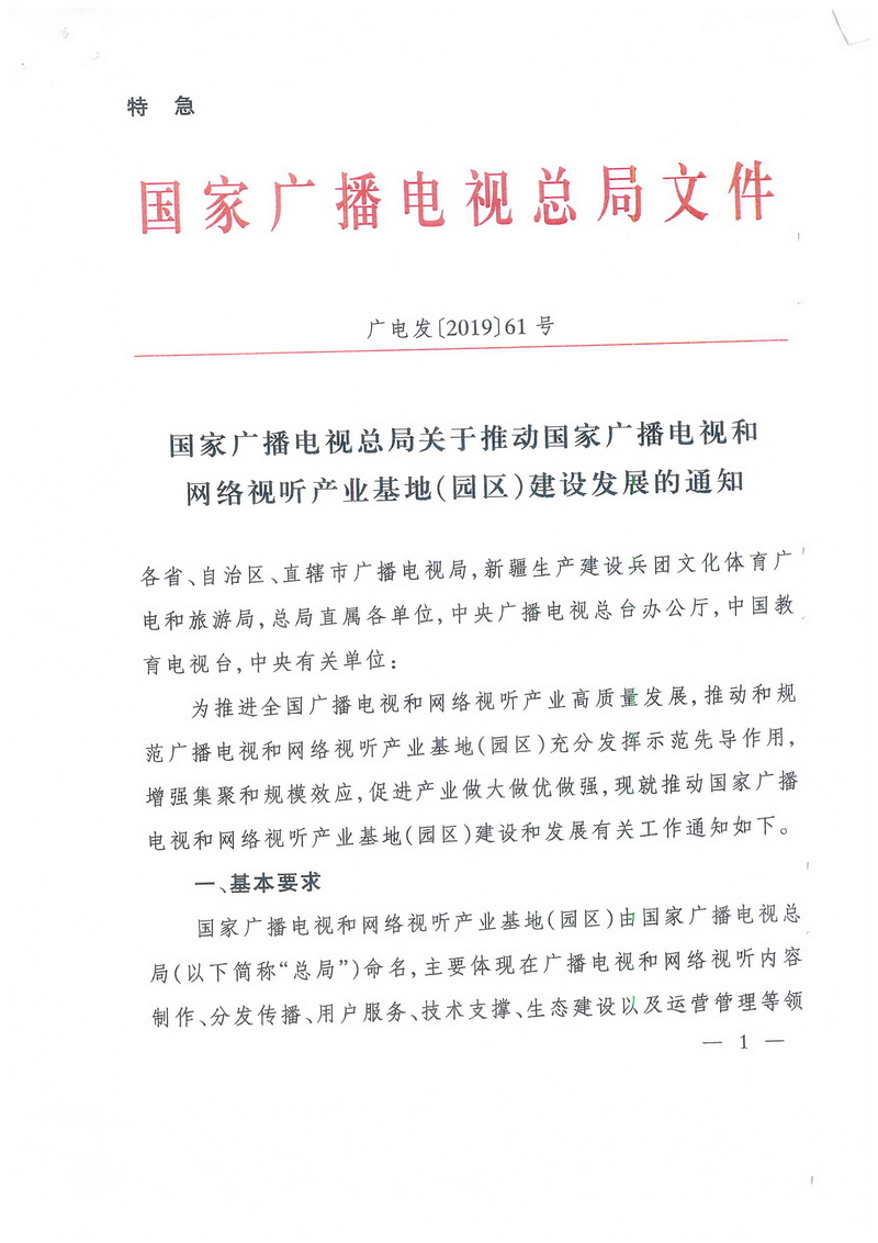 國家廣播電視總局關于推動國家廣播電視和網絡視聽產業基地(園區)建設發展的通知