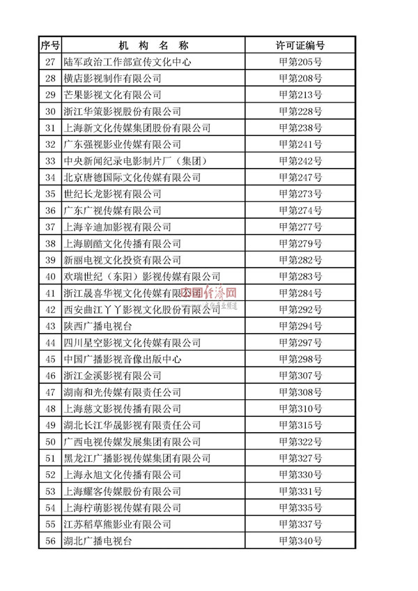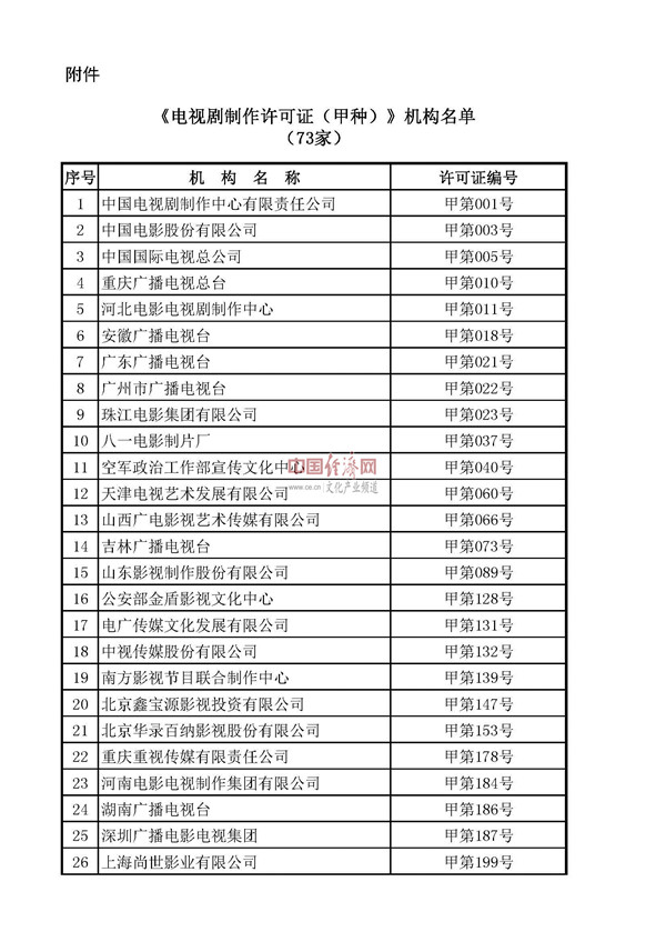 值得一提的是,由于國務(wù)院機(jī)構(gòu)改革,在此次換證工作中,《電視劇制作許可證(甲種)》發(fā)證機(jī)關(guān)統(tǒng)一變更為國家廣播電視總局,許可證有效期由往年的1年統(tǒng)一調(diào)整為3年。