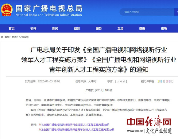 《全國廣播電視和網(wǎng)絡(luò)視聽行業(yè)領(lǐng)軍人才工程實施方案》