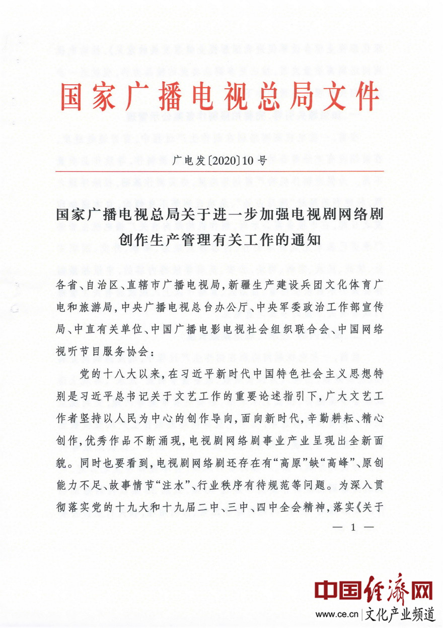 經(jīng)濟(jì)日?qǐng)?bào)-中國(guó)經(jīng)濟(jì)網(wǎng)北京2月20日訊 近日,國(guó)家廣播電視總局下發(fā)了《進(jìn)一步加強(qiáng)電視劇網(wǎng)絡(luò)劇創(chuàng)作生產(chǎn)管理有關(guān)工作的通知》(廣電發(fā)﹝2020﹞10號(hào))。據(jù)經(jīng)濟(jì)日?qǐng)?bào)-中國(guó)經(jīng)濟(jì)網(wǎng)文化產(chǎn)業(yè)頻道(微信號(hào):cewenhua)了解,該《通知》要求:一是加強(qiáng)源頭引導(dǎo),在申報(bào)備案公示時(shí),制作機(jī)構(gòu)須向省局承諾已基本完成劇本創(chuàng)作;二是反對(duì)內(nèi)容“注水”,電視劇網(wǎng)絡(luò)劇拍攝制作提倡不超過40集,鼓勵(lì)30集以內(nèi)短劇創(chuàng)作;三是做好制作成本配置比例情況報(bào)備工作。在電視劇網(wǎng)絡(luò)劇完成片審查階段,制作機(jī)構(gòu)須將制作成本決算配置比例情況報(bào)告、演員片酬合同復(fù)印件,提交至省局備案。每部電視劇網(wǎng)絡(luò)劇全部演員總片酬不得超過制作總成本的40%,其中主要演員片酬不得超過總片酬的70%。>>>更多政策可查看中國(guó)經(jīng)濟(jì)網(wǎng)“中國(guó)文化產(chǎn)業(yè)政策庫(kù)”