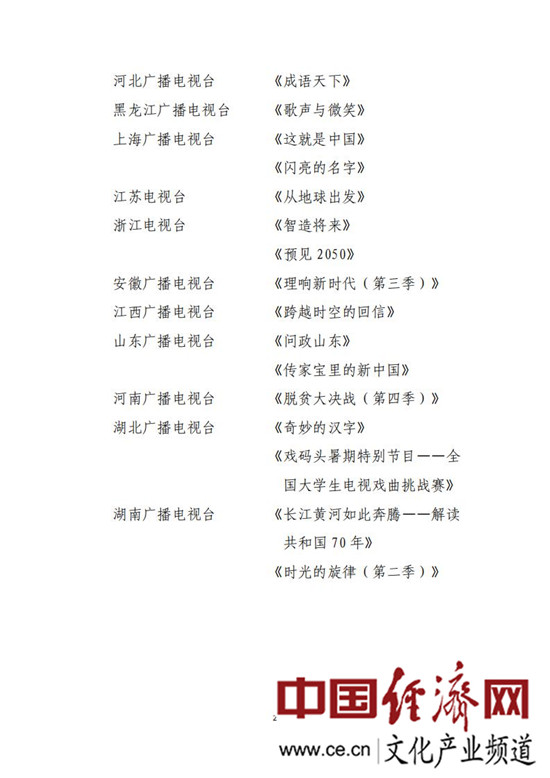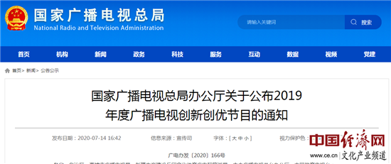 經濟日報-中國經濟網北京7月15日訊 7月14日,國家廣播電視總局公布了2019年度廣播電視創新創優節目。