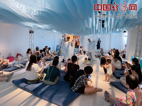 8月22日下午,在天橋藝術中心第五空間,一場沉浸式互動嬰幼兒戲劇《Ohh…Ocean!》正在上演,與其他戲劇不一樣的是,這些觀眾都是半歲至1歲的小寶寶。小寶寶們與家長一起,席地而坐,在音樂中與演員們一起感受海洋空間。天橋藝術中心第五空間運營負責人陳莉告訴記者:“內容和空間是雙向奔赴的。我們開始做這些空間的時候,不知道未來會有什么樣的內容使用這些空間。直到引進這個劇目,使空間與內容非常好地結合了起來。”