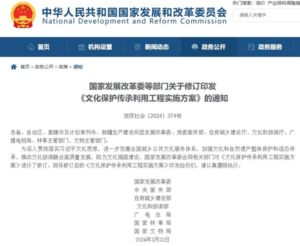 中國經濟網北京4月8日訊(記者 成琪)據國家發(fā)改委網站4月7日消息,為進一步完善全國城鄉(xiāng)公共文化服務體系,加強文化和自然遺產整體保護和活態(tài)傳承,推動文化旅游融合高質量發(fā)展,助力文化強國建設,國家發(fā)展改革委會同相關部門對《文化保護傳承利用工程實施方案》(以下簡稱“《方案》”)進行了修訂。《方案》明確,要依托國家級資源新建或改擴建一批重大文化設施,提升公共文化服務水平,促進優(yōu)秀傳統(tǒng)文化和寶貴自然遺產整體保護和活態(tài)傳承,推動高質量發(fā)展和創(chuàng)造高品質生活相得益彰。